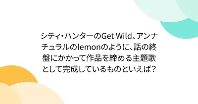 シティ・ハンターのGet Wild、アンナチュラルのlemonのように、話の終盤にかかって作品を締める主題歌として完成しているものといえば?