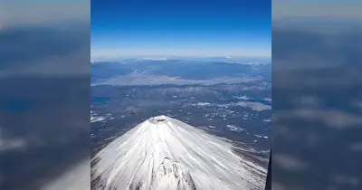 飛行機で『富士山 が見えます ぜひご覧ください』とアナウンスがあり、かなりの近さで撮影できた「宝永火口ってこんななのか」