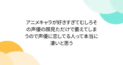 アニメキャラが好きすぎてむしろその声優の顔見ただけで萎えてしまうので声優に恋してる人って本当に凄いと思う