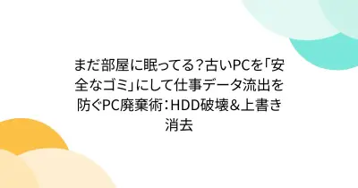 まだ部屋に眠ってる?古いPCを「安全なゴミ」にして仕事データ流出を防ぐPC廃棄術:HDD破壊&上書き消去