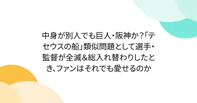 中身が別人でも巨人・阪神か?「テセウスの船」類似問題として選手・監督が全滅&総入れ替わりしたとき、ファンはそれでも愛せるのか