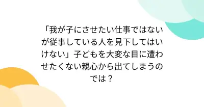 「我が子にさせたい仕事ではないが従事している人を見下してはいけない」子どもを大変な目に遭わせたくない親心から出てしまうのでは?