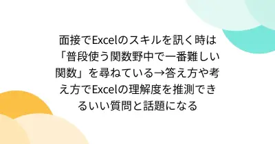 面接でExcelのスキルを訊く時は「普段使う関数野中で一番難しい関数」を尋ねている→答え方や考え方でExcelの理解度を推測できるいい質問と話題になる