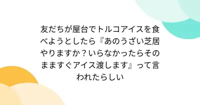 友だちが屋台でトルコアイスを食べようとしたら『あのうざい芝居やりますか?いらなかったらそのまますぐアイス渡します』って言われたらしい
