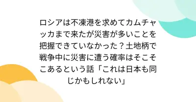 ロシアは不凍港を求めてカムチャッカまで来たが災害が多いことを把握できていなかった?土地柄で戦争中に災害に遭う確率はそこそこあるという話「これは日本も同じかもしれない」