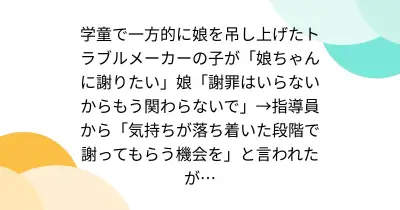 学童で一方的に娘を吊し上げたトラブルメーカーの子が「娘ちゃんに謝りたい」娘「謝罪はいらないからもう関わらないで」→指導員から「気持ちが落ち着いた段階で謝ってもらう機会を」と言われたが…