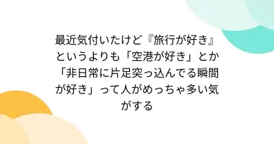 最近気付いたけど『旅行が好き』というよりも「空港が好き」とか「非日常に片足突っ込んでる瞬間が好き」って人がめっちゃ多い気がする