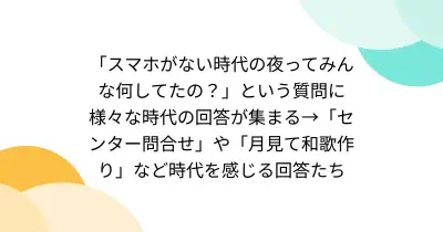 「スマホがない時代の夜ってみんな何してたの?」という質問に様々な時代の回答が集まる→「センター問合せ」や「月見て和歌作り」など時代を感じる回答たち