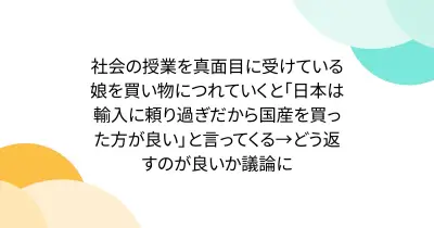 社会の授業を真面目に受けている娘を買い物につれていくと「日本は輸入に頼り過ぎだから国産を買った方が良い」と言ってくる→どう返すのが良いか議論に