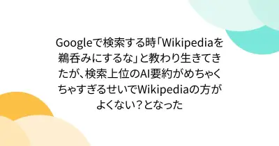 Googleで検索する時「Wikipediaを鵜呑みにするな」と教わり生きてきたが、検索上位のAI要約がめちゃくちゃすぎるせいでWikipediaの方がよくない?となった