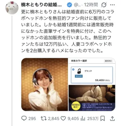 【悲報】声優・楠木ともりさん、結婚前に高額グッズを出しまくり荒稼ぎしてたと判明し炎上!!!返金を求めるオタクも登場wwwwwwww