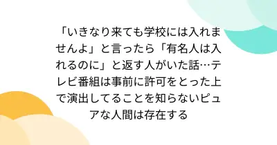 「いきなり来ても学校には入れませんよ」と言ったら「有名人は入れるのに」と返す人がいた話…テレビ番組は事前に許可をとった上で演出してることを知らないピュアな人間は存在する