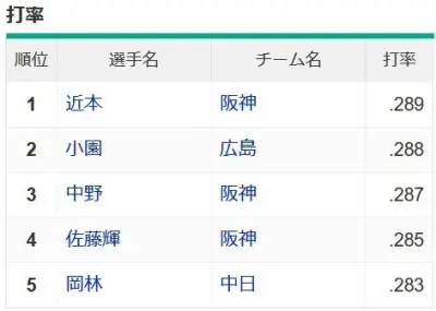 セ・リーグの首位打者の打率 .289 ( Д )゜゜