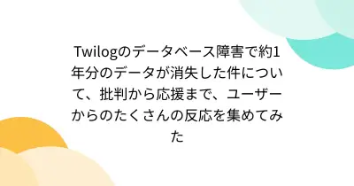 Twilogのデータベース障害で約1年分のデータが消失した件について、批判から応援まで、ユーザーからのたくさんの反応を集めてみた