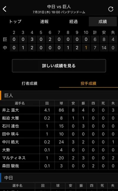 7/31セ順位スレ 神11巨=-横=-中=-広====-ヤク