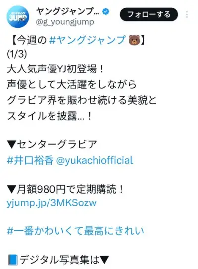 【画像】声優の井口裕香さん、まさかのヤンジャン表紙でエチエチグラビアを披露💕