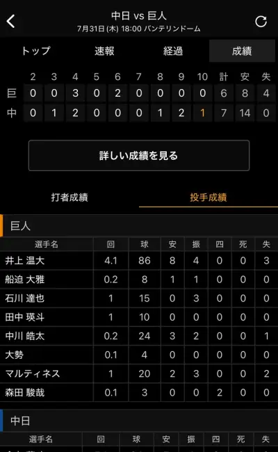 巨人・湯浅、痛恨の落球… プロ初登板の森田は被安打0でサヨナラ負け