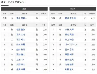 【試合実況】西武スタメン 先発:今井達也(2025.7.31)