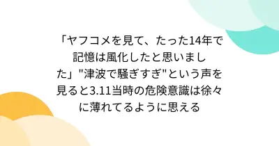 「ヤフコメを見て、たった14年で記憶は風化したと思いました」"津波で騒ぎすぎ"という声を見ると3.11当時の危険意識は徐々に薄れてるように思える