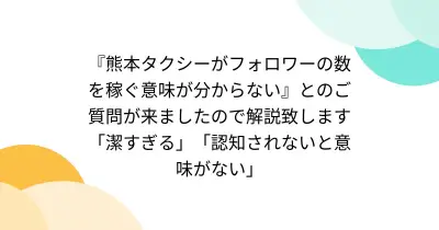 『熊本タクシーがフォロワーの数を稼ぐ意味が分からない』とのご質問が来ましたので解説致します「潔すぎる」「認知されないと意味がない」
