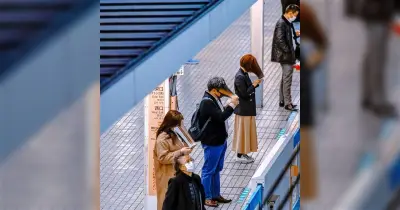 電車の待ち時間にスマホを見る人々の風刺画、現代を風刺すれば知的な人間を装うことが出来ると勘違いした変な人に変な加工して晒される人が可哀想すぎる