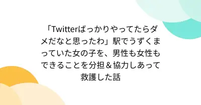 「Twitterばっかりやってたらダメだなと思ったわ」駅でうずくまっていた女の子を、男性も女性もできることを分担&協力しあって救護した話