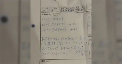 銀座三越にある託児所に我が子を預けたら、保育報告書の文章がけっこうツボだった「『12:00 ご来室です』から面白くてジワジワくる」