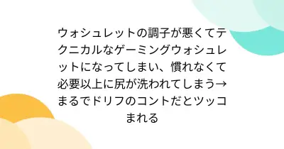 ウォシュレットの調子が悪くてテクニカルなゲーミングウォシュレットになってしまい、慣れなくて必要以上に尻が洗われてしまう→まるでドリフのコントだとツッコまれる
