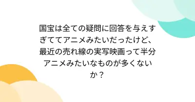 国宝は全ての疑問に回答を与えすぎててアニメみたいだったけど、最近の売れ線の実写映画って半分アニメみたいなものが多くないか?
