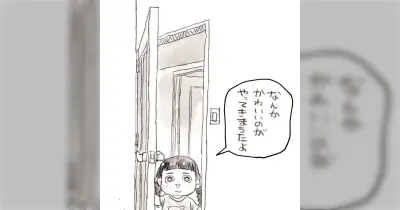 子どもが仕事部屋に入ってくるたび「なんか可愛いのがきた」と言っていたらこうなった、というイラストが尊い「あるある」「”ちいかわ”ならぬ”なんかわ”」