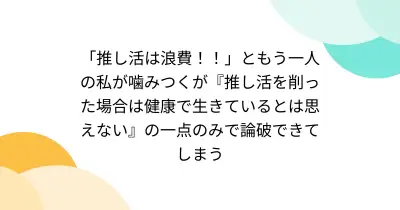 「推し活は浪費!!」ともう一人の私が噛みつくが『推し活を削った場合は健康で生きているとは思えない』の一点のみで論破できてしまう