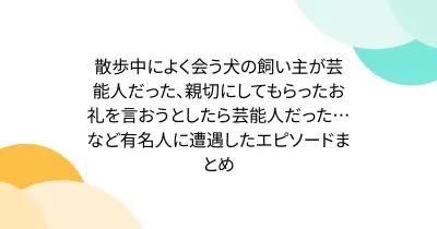 散歩中によく会う犬の飼い主が芸能人だった、親切にしてもらったお礼を言おうとしたら芸能人だった…など有名人に遭遇したエピソードまとめ