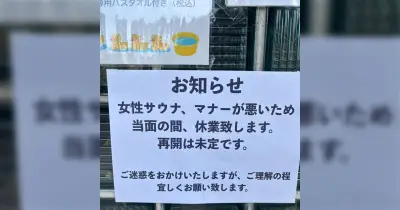 とある銭湯でマナーを守らない客が現れ、苦渋の決断でサウナが当面の間休業に… 貼紙で注意するも、サウナで洗濯物を干す、持込禁止であるにもかかわらず持込むといった行為が止まず
