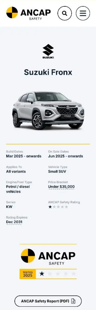 スズキ「フロンクス」、衝突時にシートベルトがぶっ壊れて乗員が前に激突。安全性は★1の最低評価に