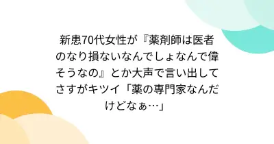 新患70代女性が『薬剤師は医者のなり損ないなんでしょなんで偉そうなの』とか大声で言い出してさすがキツイ「薬の専門家なんだけどなぁ…」