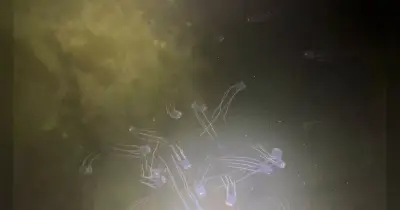 夜の海を見てみたら、大量のクラゲが想像以上の速さで泳いでいて怖すぎた「これは…こわい…」「こんな速度で泳ぐの!?」
