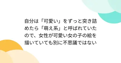 自分は「可愛い」をずっと突き詰めたら「萌え系」と呼ばれていたので、女性が可愛い女の子の絵を描いていても別に不思議ではない
