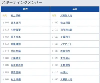 【阪神対広島17回戦】6(遊) 小幡 竜平 8(左) 高寺 望夢