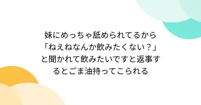 妹にめっちゃ舐められてるから「ねえねなんか飲みたくない?」と聞かれて飲みたいですと返事するとごま油持ってこられる