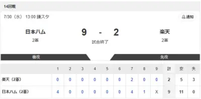 【2軍 日本ハムvs.楽天】9-2で勝利