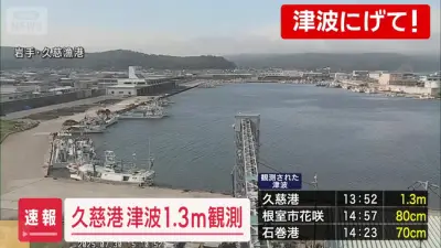 岩手・久慈港で1.3メートルの津波観測 太平洋沿岸中心に津波警報