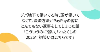 デパ地下で働いてる時、頭が働いてなくて、決済方法がPayPayの客にとんでもない返事をしてしまった話「こういうのに弱い」「わたくしの2026年初笑いはこちらです」