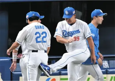 【画像】中日ドラゴンズ井上監督、5失点した大野のケツをキック