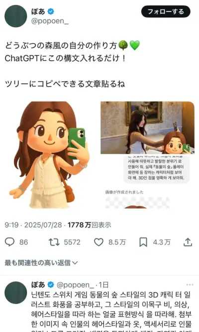 【悲報】X女性「ChatGPTで『どうぶつの森』風の自分を生成した!」←滅茶苦茶に叩かれてしまうwwwwwwwwwwww