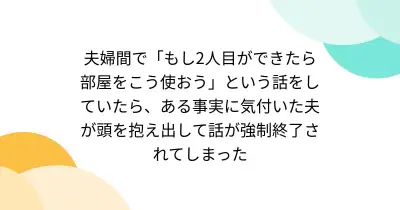 夫婦間で「もし2人目ができたら部屋をこう使おう」という話をしていたら、ある事実に気付いた夫が頭を抱え出して話が強制終了されてしまった