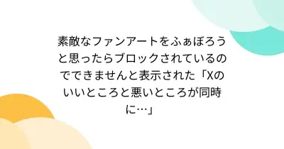 素敵なファンアートをふぁぼろうと思ったらブロックされているのでできませんと表示された「Xのいいところと悪いところが同時に…」