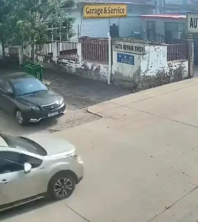 【衝撃映像】事故車が修理工場に吸い込まれる瞬間