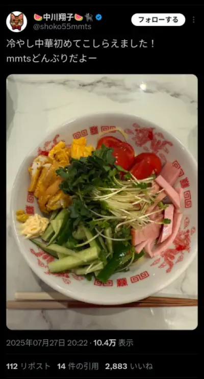 【画像】中川翔子さん手作りの「冷やし中華」WWWWWWWWWWWWWWWWW