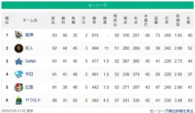 阪神が強すぎてセリーグがつまんない