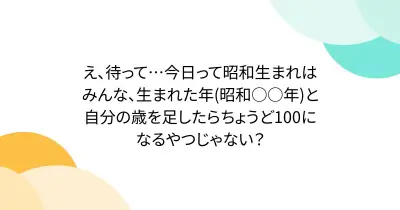 え、待って…今日って昭和生まれはみんな、生まれた年(昭和○○年)と自分の歳を足したらちょうど100になるやつじゃない?